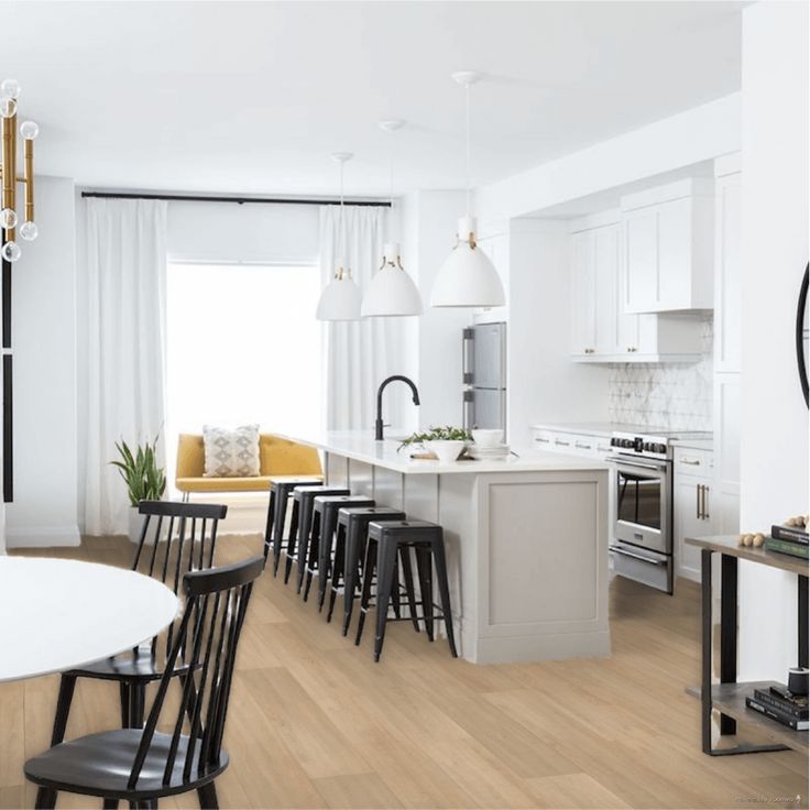 Transitional designs tend to be a combination of both traditional and contemporary designs. In this case, such versatile solutions as luxury planks made of vinyl prove to be durable and resemble more costly materials.