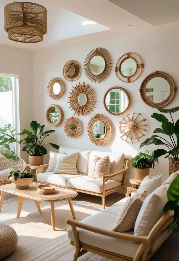 Mirrors are also excellent for enhancing light. They reflect natural and artificial light, helping to brighten dark or enclosed areas. A well-placed wall mirror can bounce sunlight across the room, adding warmth and making the space feel more inviting