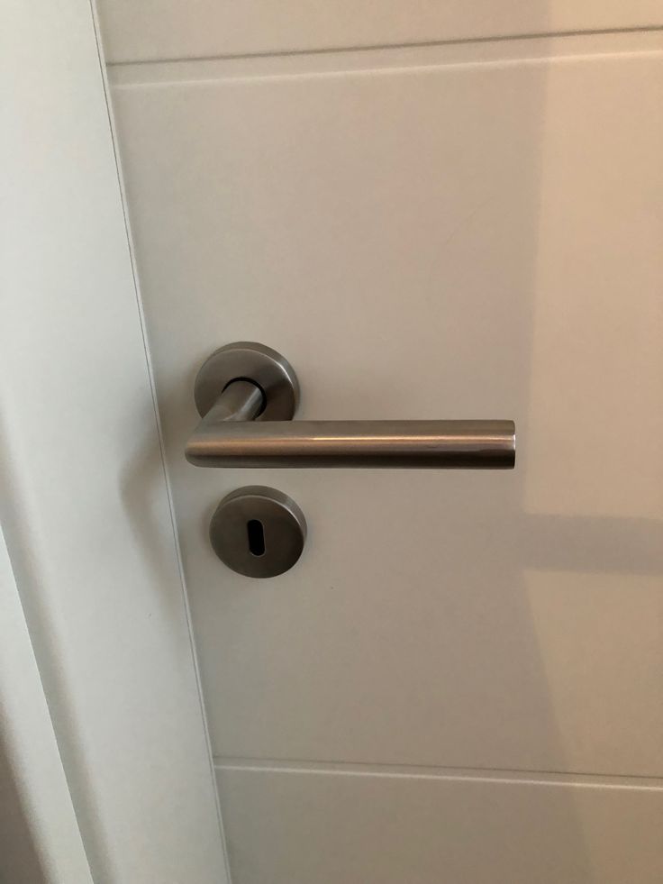 Next, position your new lever door handle in place. If you’re using a pre-drilled door, align the spindle with the slot on either side of the bore hole. For doors without pre-existing holes, measure carefully where you’d like to install it—generally around 36 inches from the floor is standard for accessibility.